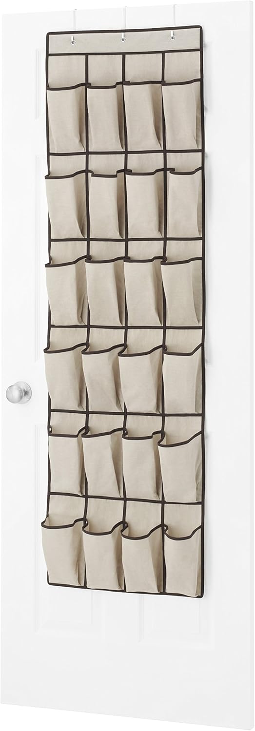 Whitmor's 26 Pocket Over the Door Shoe Shelves offers the best way to organize and see your shoes in your closet. While using that dead space behind your door, it holds your shoes on display to easily find the pair that you are looking for. It saves time while also protecting your investment. Heavy-duty construction and triple hooks mean that they will last for years. Hooks are compatible with most modern interior doors. Assembled Dimensions: 6.0 L x 22.0 W x 63.0 H inches.