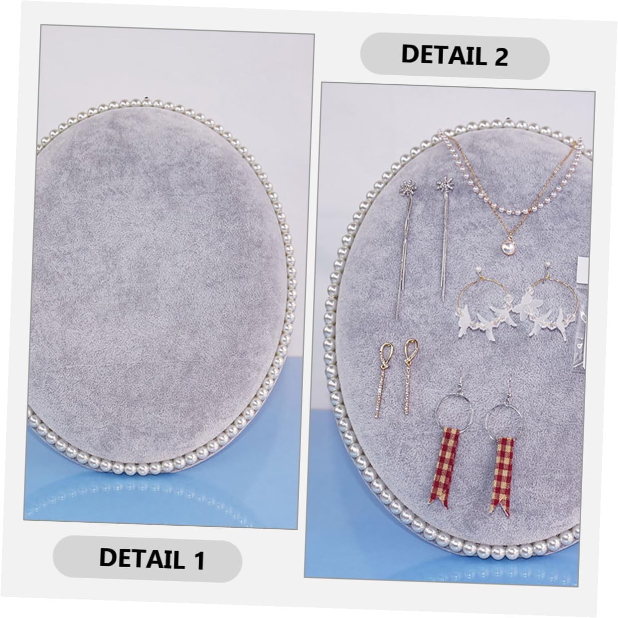 Package Include 1 x earring organizer Features -Product Info:Earring storage rack - Color: Grey -Material:Lint, sponge, density board - Size: 32.50X25.50X3.00cm/12.77X10.02X1.18in - The oval shaped board for earrings is a stylish and secure way to display your jewelry collection, very useful tool earring display stands for selling. - This functional design is perfect for organizing and showcasing a variety of earrings, you can easily arrange earring holder for . - The oval board design adds a touch of elegance and sophistication to your jewelry display, beautiful backdrop earring display stand. - The space-saving wall-mounted design is perfect for those who want to keep their jewelry organized and easily earring hanger rack. - The craftsmanship of this jewelry display the durability with attention to detail Earring Organizer.Goods Informationearring tree for This Home Wall-mounted Jewelry Organizer is designed with functionality in mind, making it convenient for storage and display.Ear Studs Display Stand The use of lint material gives it a luxurious feel and protects your jewelry from.earring display board The adds a unique and visually appealing element to the rack, enhancing its overall aesthetic and quality